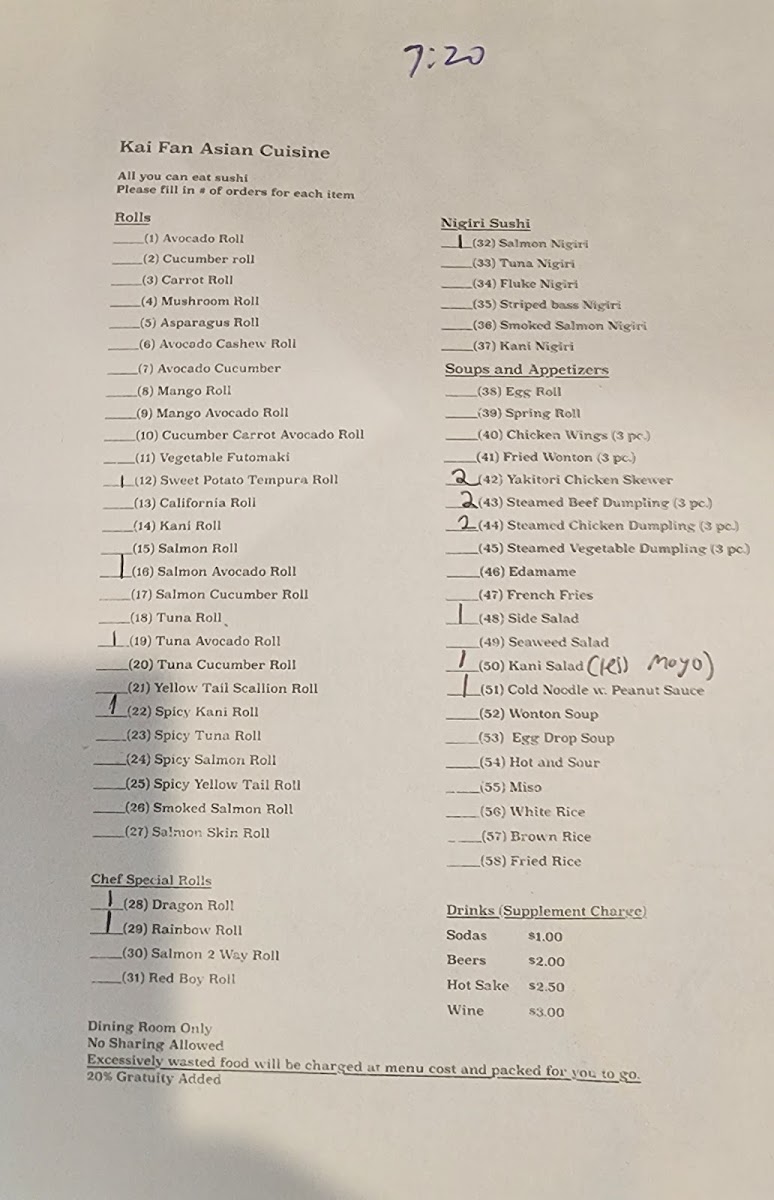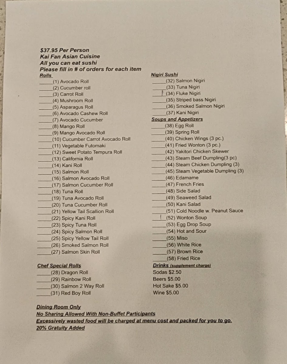 Choice of dragon roll, rainbow roll, red boy roll, tokyo roll, or godzilla roll.